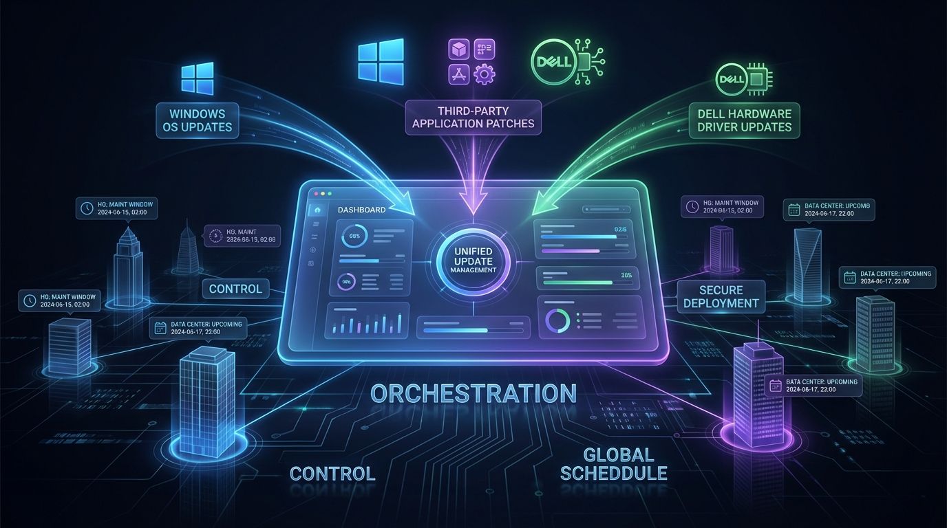 Our solution delivers complete, integrated update management across every layer of the endpoint stack—Windows OS, third-party applications, and Dell hardware drivers—through a single, cohesive framework.