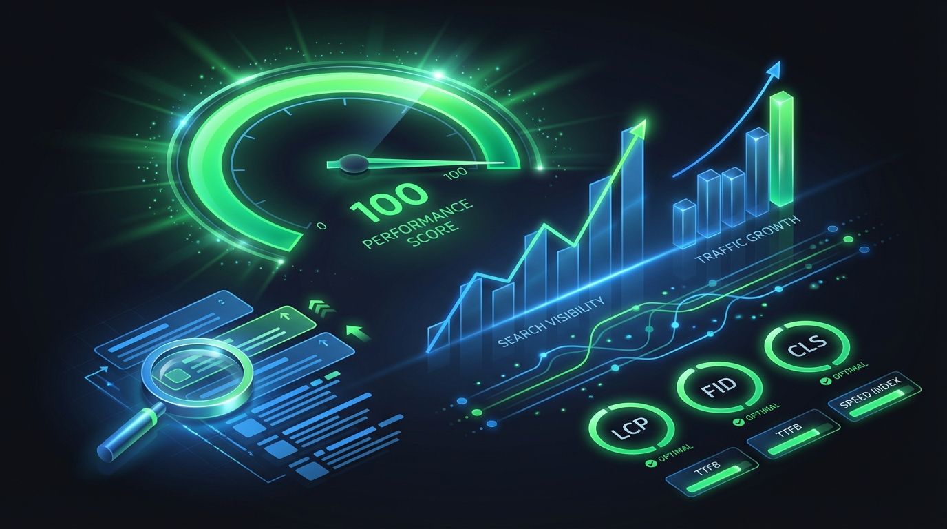 Google uses Core Web Vitals — Largest Contentful Paint (LCP), Cumulative Layout Shift (CLS), and Interaction to Next Paint (INP) — as ranking signals. Our sites are engineered to score green across all three metrics. We optimize images with modern formats (WebP, AVIF), lazy-load below-the-fold content, minimize JavaScript bundles, and eliminate layout shifts.